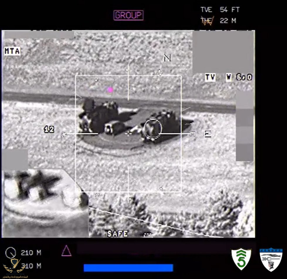 منظر مباشر من نظام الاستهداف في طائرة رافال F4.1 التابعة للجناح الجوي الخامس للقوات الجوية الفرنسية خلال مهمة SEAD (قمع دفاع العدو الجوي). الطائرة نفّذت هجومًا إلكترونيًا وتكتيكياً ضد رادار التوجيه ثلاثي الأبعاد Arabel، المكوّن الأساسي في منظومة الدفاع الجوي بعيدة المدى MAMBA (ASTER 30).