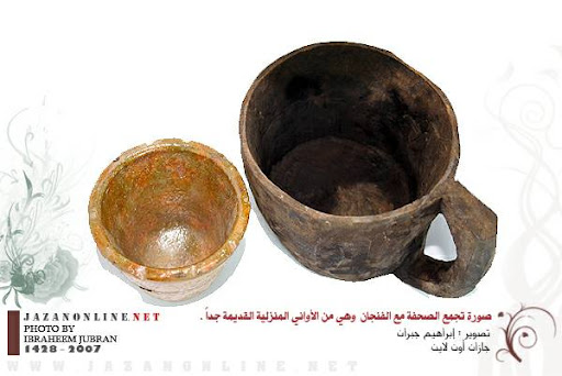 مصنوع من الفخار المحروق .. يستخدم لشرب القهوة .. مازال يستخدم بشكل بسيط من كبارالسن.. مستخدم في المنطقة منذ أكثر من 100 سنة تقريباً