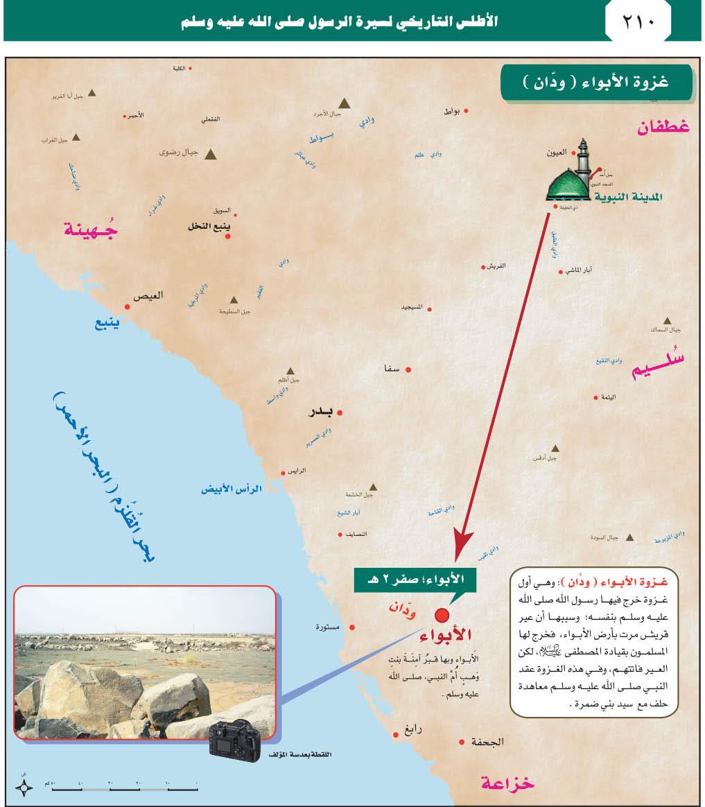 خريطة أول غزوة غزاها الرسول صلى الله عليه وسلم وهي غزوة الأبواء في صفر سنة 2 هـ