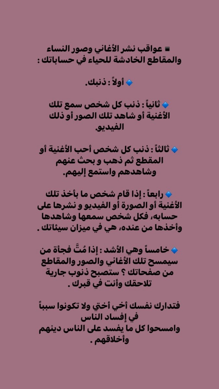 عواقب نشر الأغاني وصور النساء والمقاطع الخادشة للحياء في حساباتك :