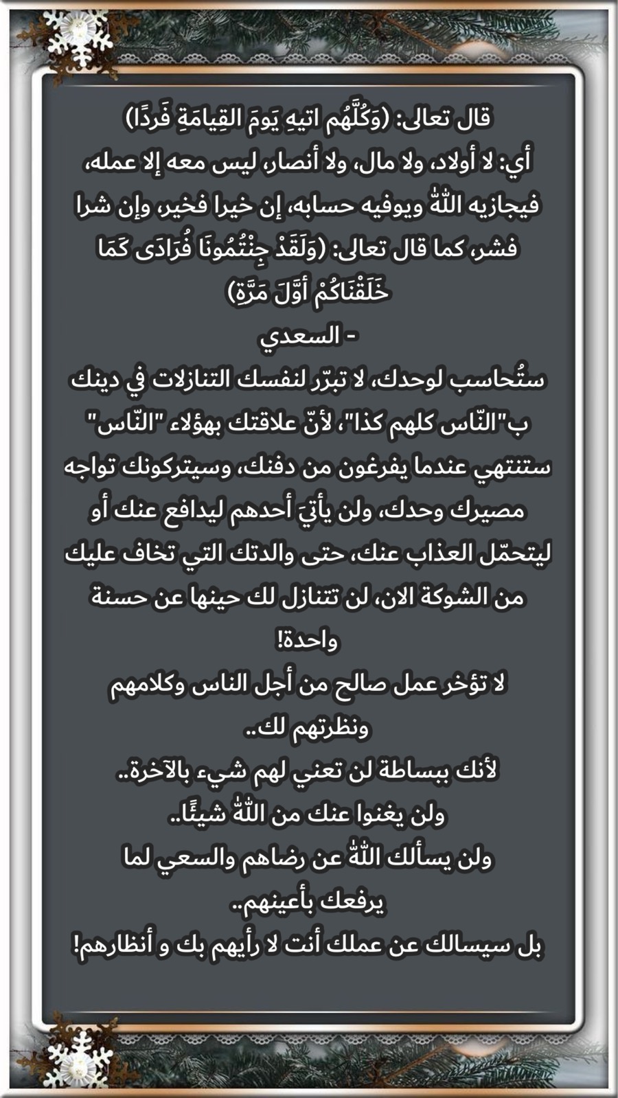 قال تعالى: (وَكُلَّهُم اتيهِ يَومَ القِيامَةِ فَردًا)